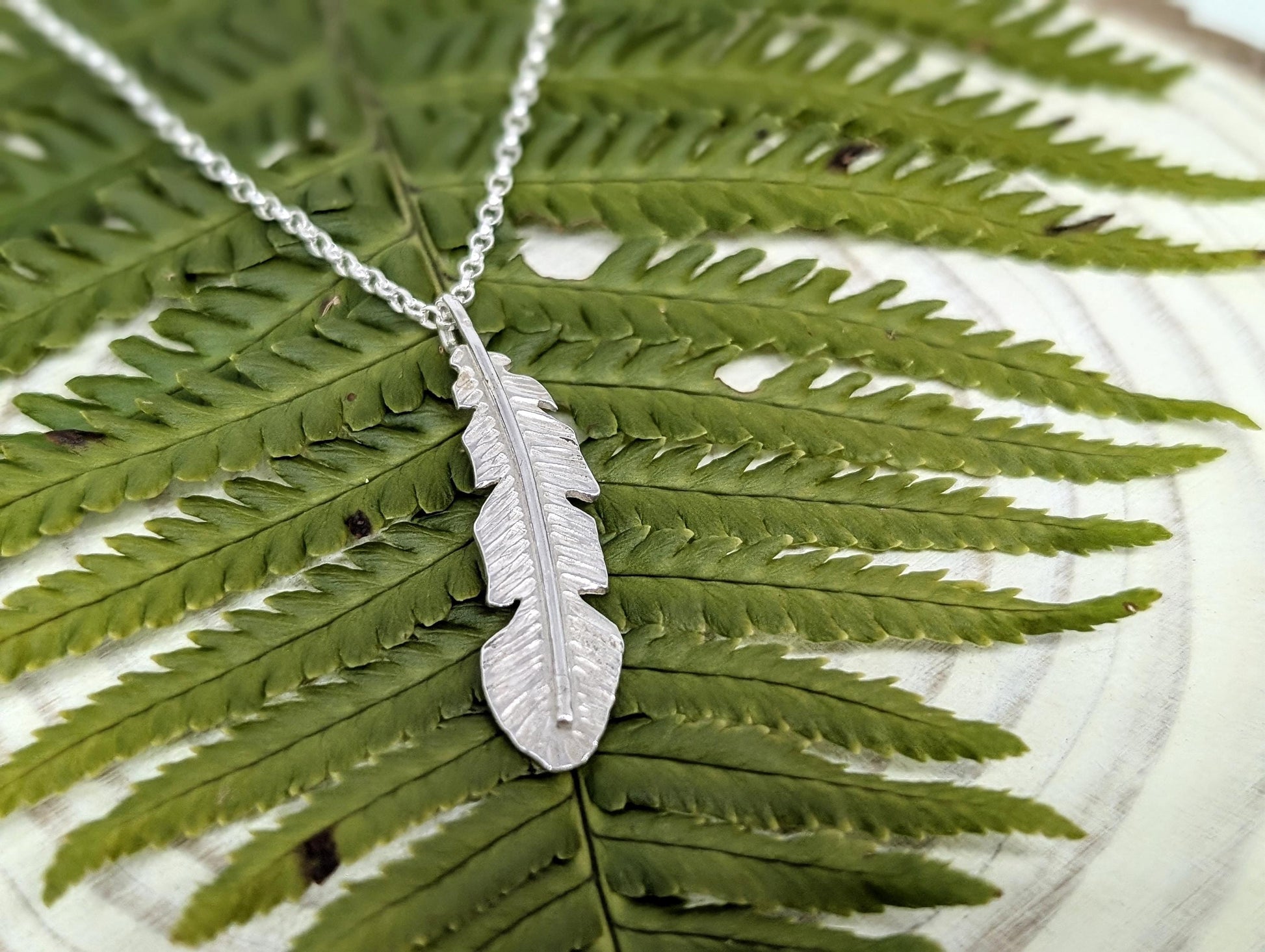 This sterling silver feather is 100% handmade using traditional silversmithing techniques. Many people wear feather jewellery to remind them of loved ones they have lost or to connect with feelings of hope, protection or faith.