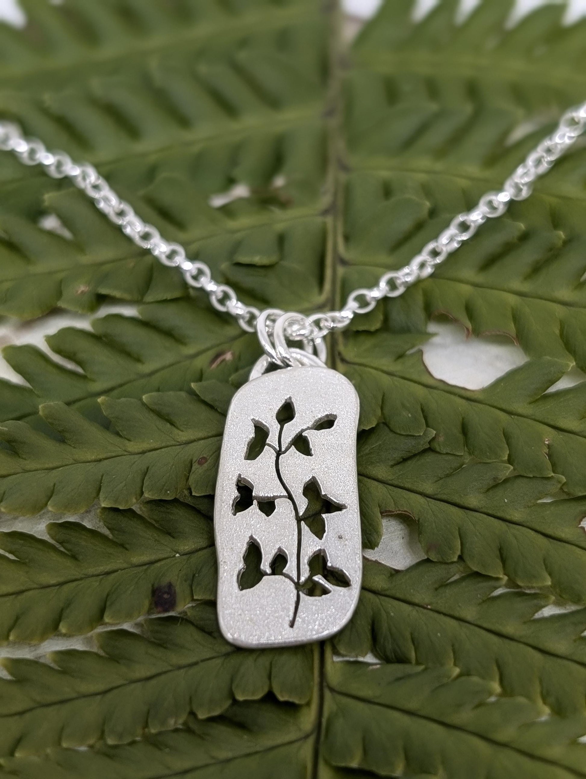 Each pendant of this design is totally unique as I hand draw the branches each time so no two will ever be the same and you will own a truly unique piece of wearable art. This one is dainty, measuring 20mm high and 9mm wide and sits on a sterling silver belcher chain which is adjustable in length from 18 to 20 inches. The pendant has a lightly frosted finish.